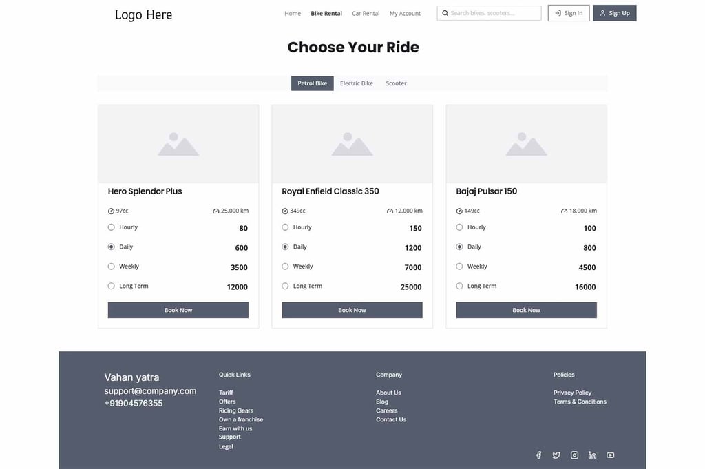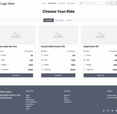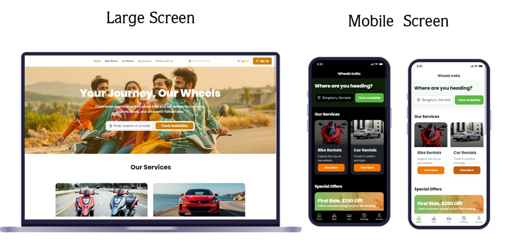 This project focuses on designing a responsive web and mobile application for renting bikes and car,The platform enables users to easily browse, compare, and book petrol, diesel, and electric vehicles, including bikes, scooters, and cars.